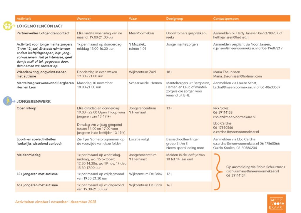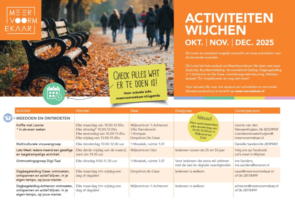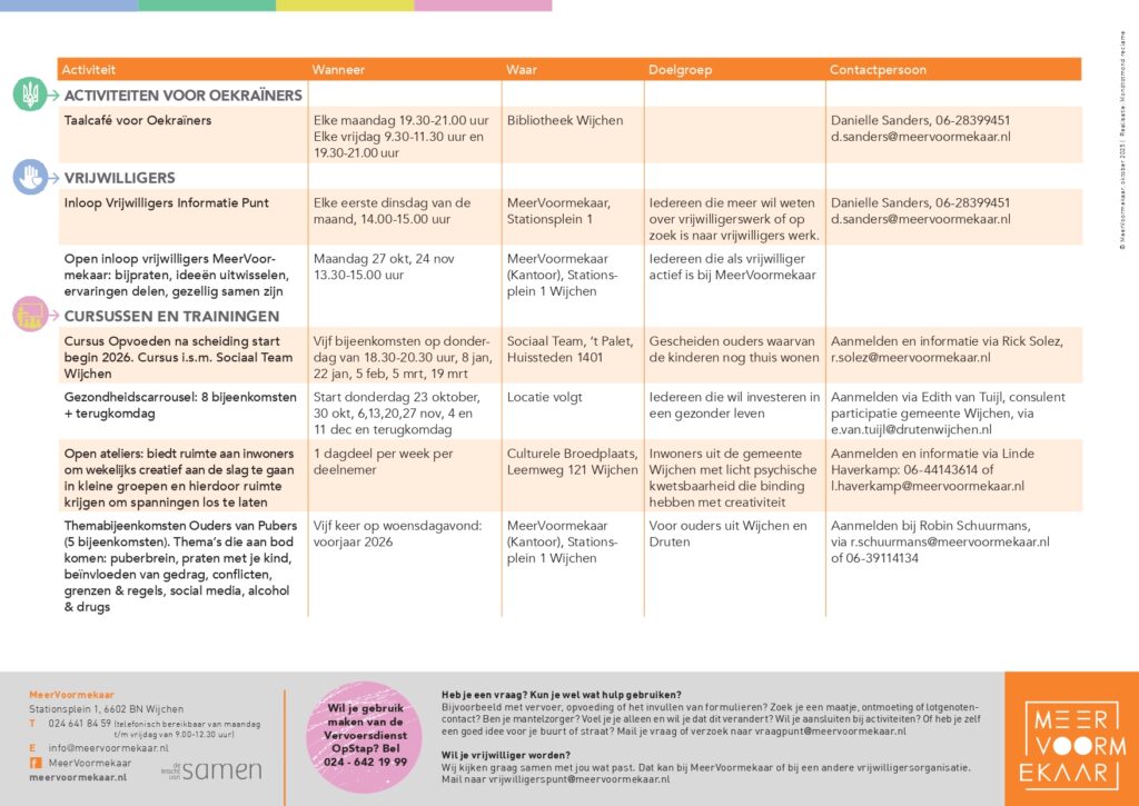 Ben jij vrijwilliger bij MeerVoormekaar?Activiteiten overzicht Druten van okt. t/m dec. 2025