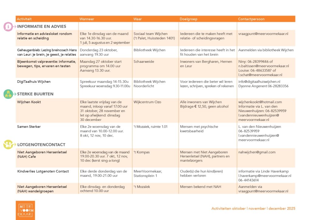 Activiteiten overzicht Wijchen okt. t/m dec 2025